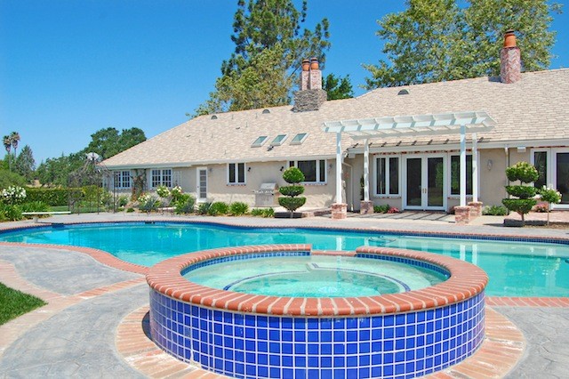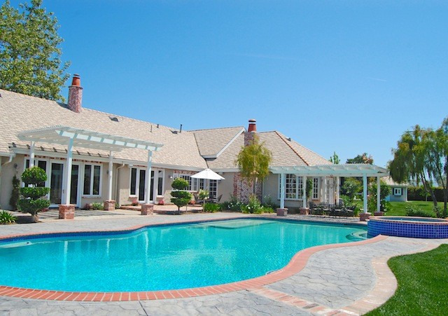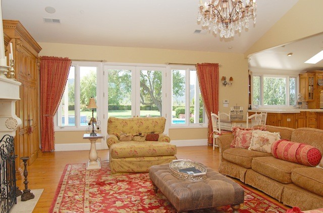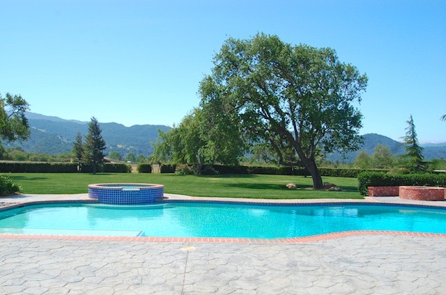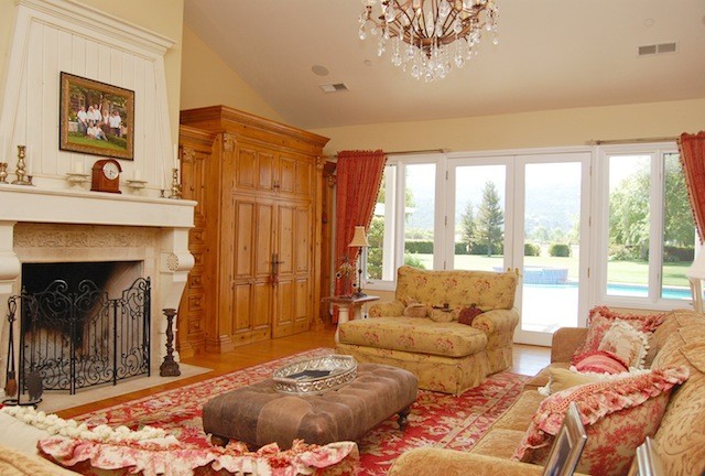This outstanding custom home with panoramic views has been remodeled with additional square footage added through 2006. Almost 5,000 square feet of living space, with 5 bedrooms, 5 baths, 4 car garage, 4 fireplaces, pool and spa, and RV Barn/ workshop are just a few of the amenities of this property. This incredible home has a gourmet kitchen with limestone flooring, Viking 6 burner stove, huge sub zero refrig, vegetable sink in a center island, Knotty Pine Custom cabinets, granite countertops, a fireplace and the windows all face out to a spectacular views of the mountains. Additional rooms are formal dining room, pine paneled office, family room, converted loft over garage to game room, and sitting room. Travertine floors in baths, pine plank flooring and carpet in the remainder of home. Game room over garage with full bath and kitchen allows for guests or entertainment opportunities. There is acres of lawn surrounding the home in addition to a beautiful pool and spa. There is ample room for pastures and barns for horses. Outdoor shower for swimmers, play house, extra parking in addition to the 4 car garage. There is an indoor and outdoor music system installed as well as surround sound movie system. The property has a gated entry, professionally landscaped and outstanding views.
